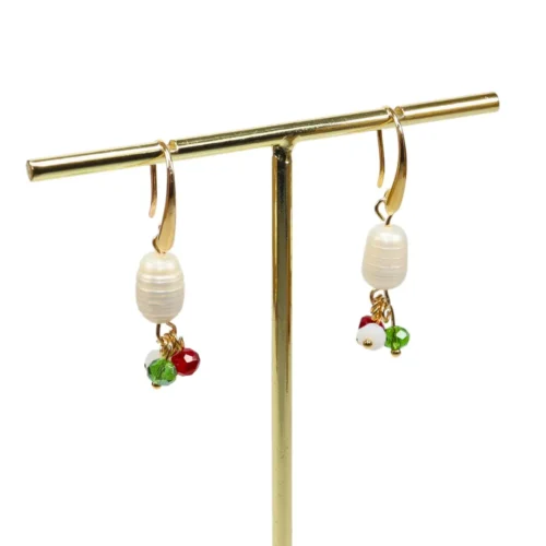 Aretes con cristales tricolor y perla