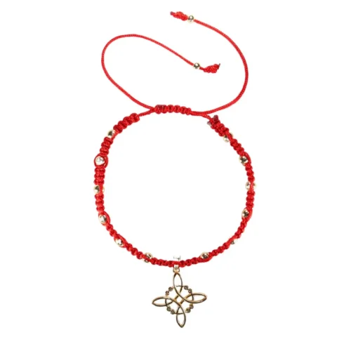 Pulsera tejida con dije nudo de bruja