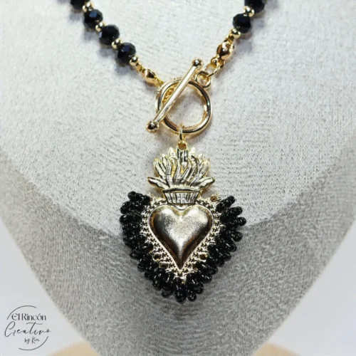 Pulsera tejida con figura de la Virgen de Guadalupe
